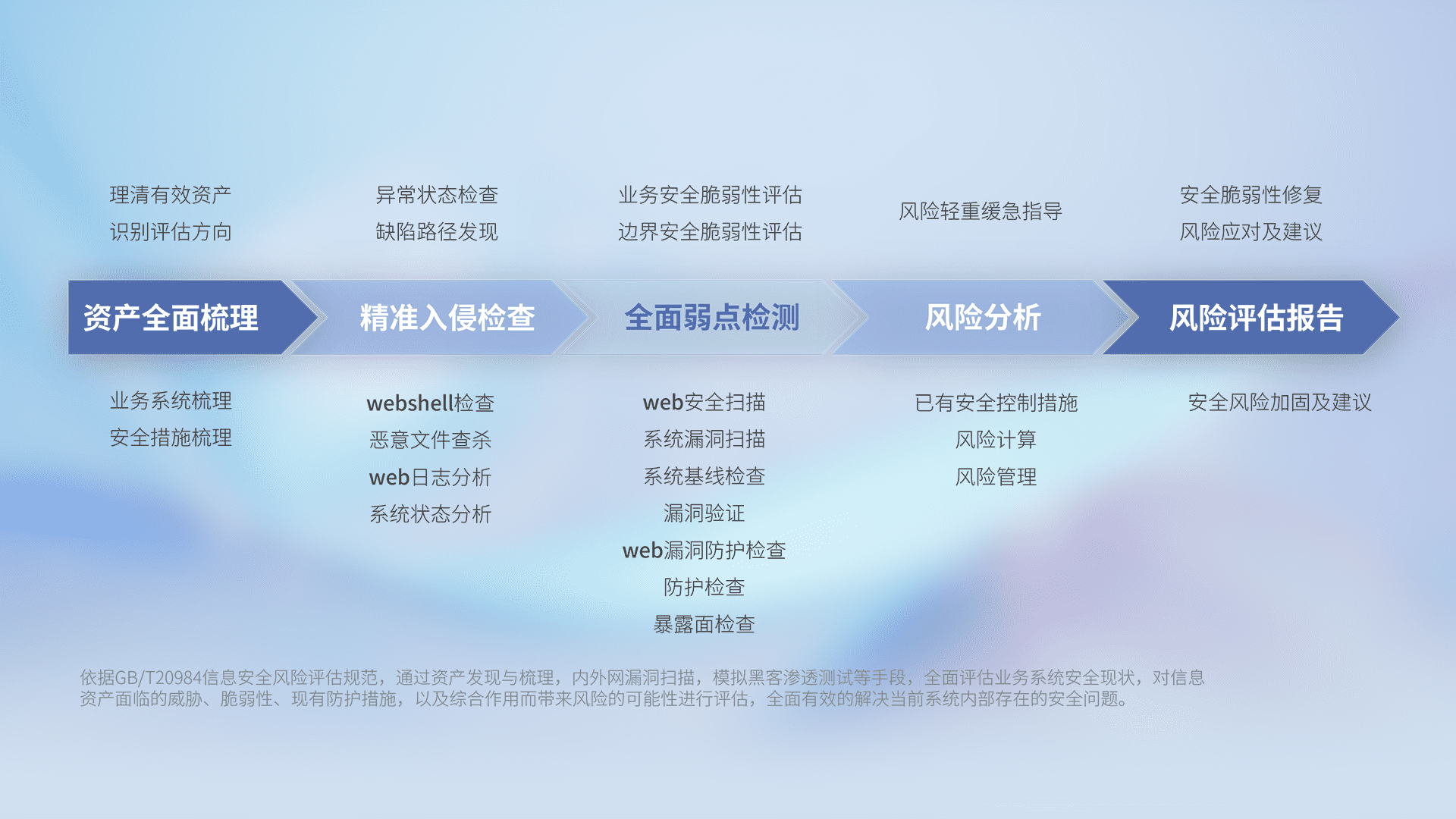 针对客户行业特性,,,以专业的安全服务+多厂商联合解决方案提供专属的一站式安全管理服务,,帮助客户全面感知网络空间威胁,,,,基于识别、、检测、、、、分析、、防护、、监测、、、响应的服务理论模型,,从方案咨询、、、、集成交付、、评估验证、、、优化加固、、、、运维运营,,致力于为客户提供完整的闭环管理式安全服务。。以实战经验为客户打造高抵御风险的安全体系,,帮助客户发现威胁、、对抗威胁、、处置威胁,,不断积累安全对抗能力,,持续保障数字化安全。。。。